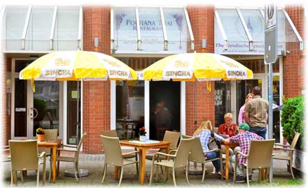 Das war unser Anspruch und ist es immer noch! Dazu gehört eine entsprechende Atmosphäre, die beim Betreten des Pochana Thai spürbar sein sollte, halt typisch Thai, wie bei uns, wo Thai auch drin “isst”, mittlerweile auch das einzige “echte” Thairestaurant Bremens.
