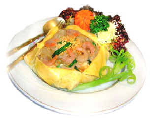 206 "PAT THAI" Reisnudeln mit Garnelen und Sojakeimen "Pochana Art" in Eihülle 22,50